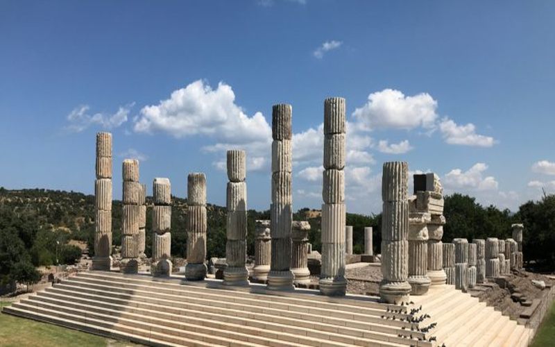 MÖ 150 yılında Ion tarzından inşa edilen tapınağın en ilgi çekici yanı kuşkusuz, Homeros’un İlyada destanında anlatılan Troya Savaşı’ndan alan kabartmalarıdır. Bu anlatımın daha pek çok nesne üzerinde çizimlerinde anlatıldığı görülmüş ancak bu bir tapınakta ilk kez yapılmıştır. Destanın bölümleri sırasına göre ilerliyor kabartmalarda. 120 metre uzunluğundaki kabartmaların şuanda yalnızda 24 metrelik bölümü çıkarılmıştır. Apollon Smintheus tapınağı, Troya’daki Athena tapınağının ardından Troas’ın en önemli kutsal mabedidir. Apollon Smintheus çiftçileri farelerden koruyan tanrı olarak bilinmektedir.